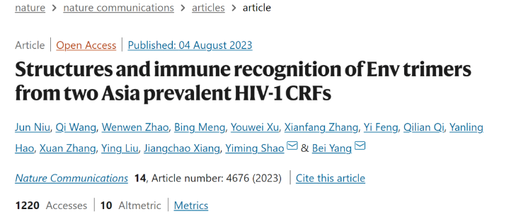 “免疫聚焦型疫苗策略”的開展不僅需要廣譜中和抗體抗原表位的指引,也需要對Env蛋白的結(jié)構(gòu)與抗原特征進行全面掌握。當(dāng)前,針對Env蛋白的結(jié)構(gòu)與抗原特征研究均集中于在歐、美、非洲流行的A、B、C亞型,對于在亞洲尤其是我國占主導(dǎo)地位的流行重組亞型CRF01_AE和CRF07_BC則鮮有相關(guān)報道。此外,僅有極少數(shù)廣譜中和抗體從感染流行重組亞型的個體中分離,且它們的抗原表位與中和機制也尚未得到充分闡釋。上述信息的缺乏阻礙了我們對于流行重組亞型Env蛋白的結(jié)構(gòu)與免疫原性的認(rèn)識,也不利于免疫聚焦型疫苗研發(fā)策略在我國的開展及應(yīng)用,在此背景下,楊貝課題組與合作者開展了深入的研究。